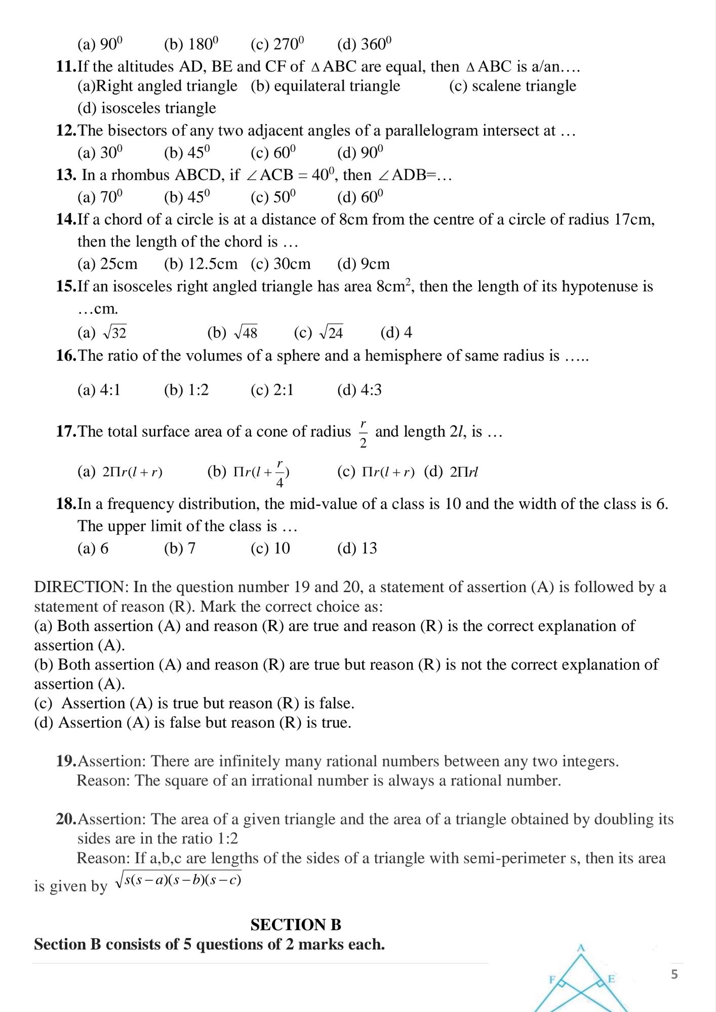 Class 9 Paper-4 | cbse 9th maths model question paper