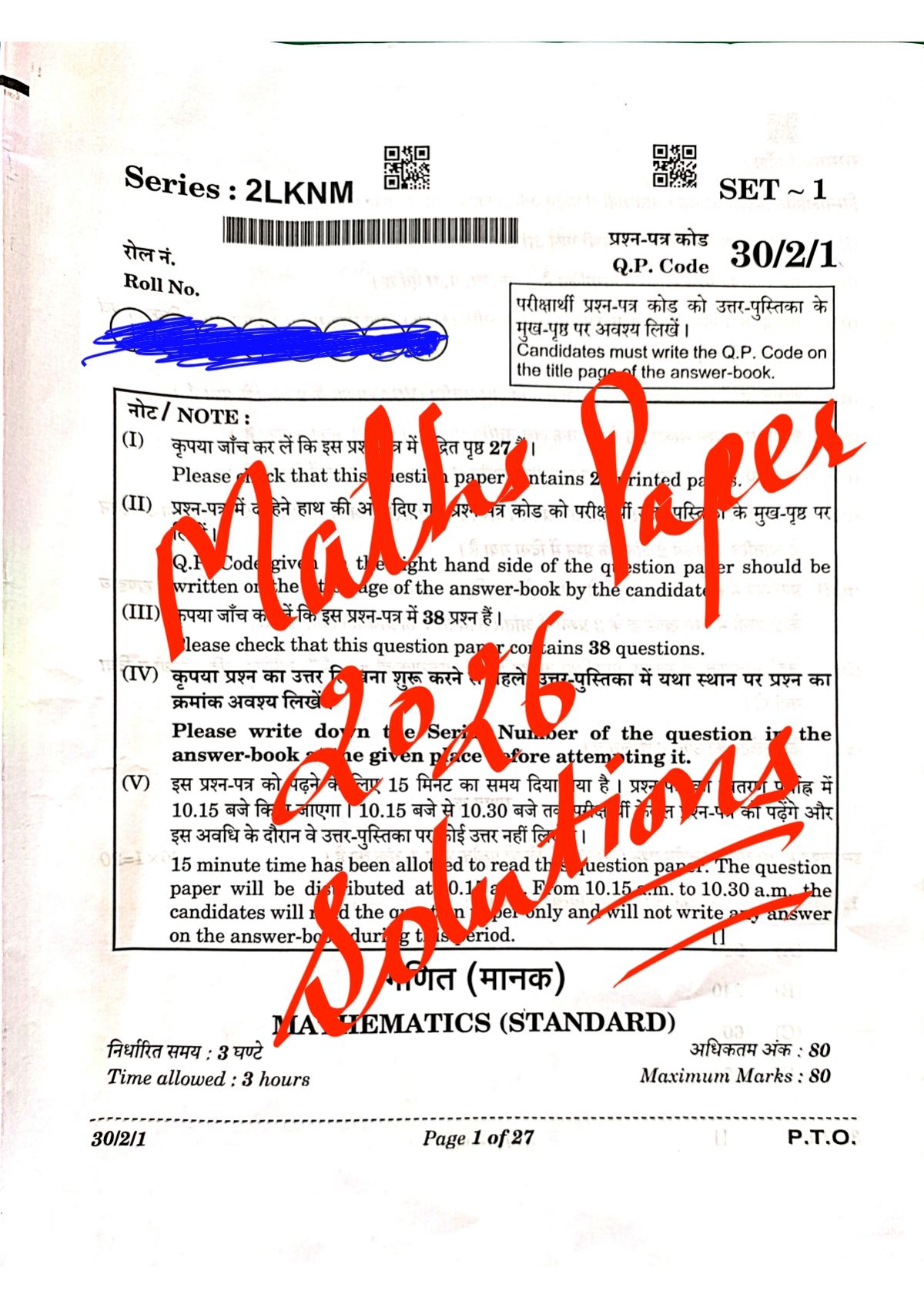 The detailed answer key for Class 10 Maths Board Exam 2026 is provided below. Solutions are available for Set 1, Set 2, and Set 3.