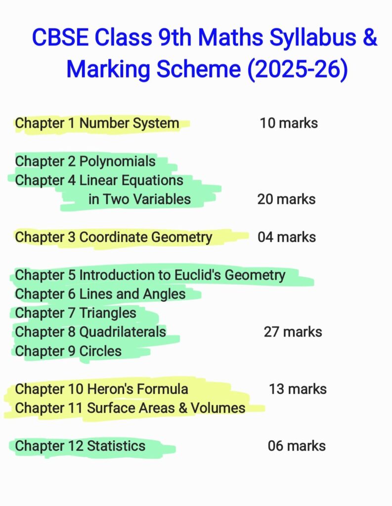 CBSE Class 9th Maths Blueprint, Marking Scheme | Blueprint of Maths class 9 cbse 2025-26