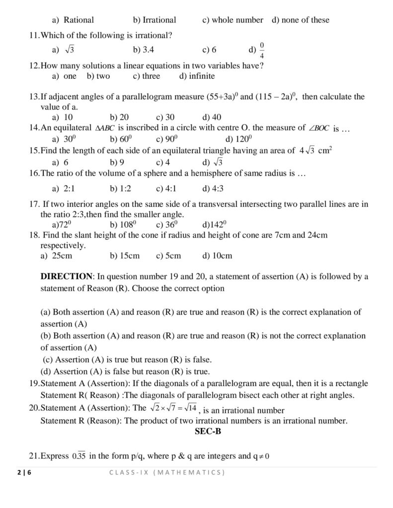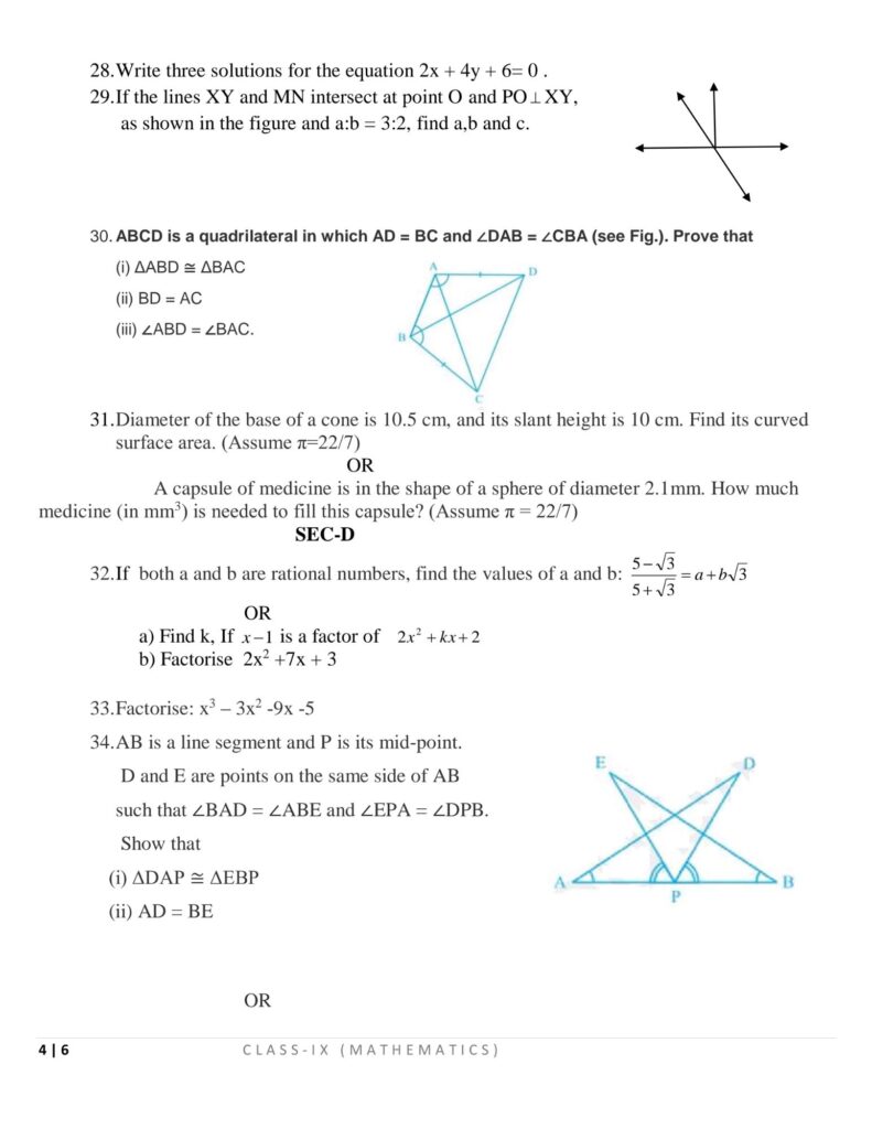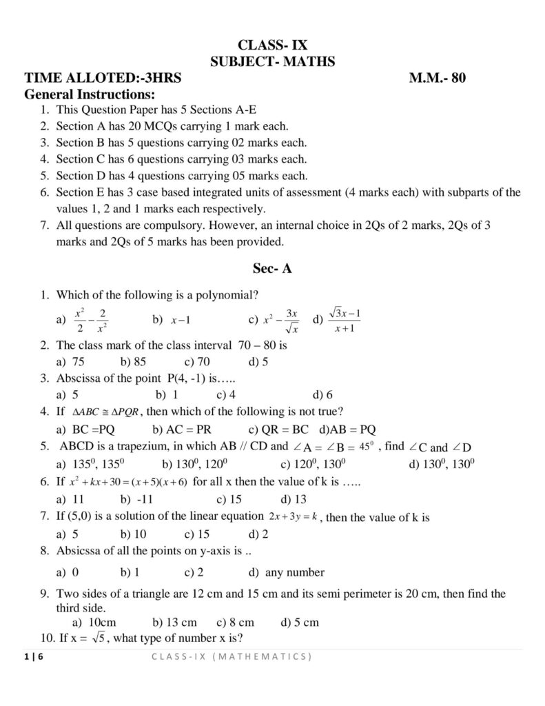 Class 9 Maths Sample Question Paper 2025 – CBSE Annual Exam PDF Download